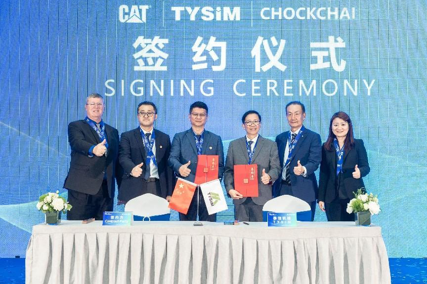 多年來,“創(chuàng)新”的基因已融入企業(yè)的血脈中,泰信制造的多款卡底旋挖鉆機均在市場中獲得的極佳反饋。泰信與卡特彼勒的深度合作,既是泰信的創(chuàng)新之舉,也是強強聯(lián)合共謀發(fā)展的明智之舉??ㄌ乇死展咀鳛樘┬趴ㄌ叵盗行阢@機底盤的高端品牌供應(yīng)商,對與泰信機械的創(chuàng)新合作模式表示高度認可。三位卡特彼勒相關(guān)負責人現(xiàn)場致辭并表示卡特將與泰信保持良好的合作伙伴關(guān)系,為泰信卡特系列旋挖機在全球范圍內(nèi)的市場做好全方位的售后保障工作,相信泰信卡特系列旋挖鉆機將在全球基建項目中綻放光彩。